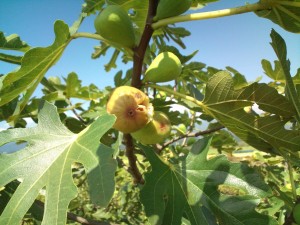 イチジクの実が熟してきました。先日、千代のお母さんが枝を分けてほしいと言うので、なるべく下がっている枝の中間を、先を曲げた鉄筋で引っ掛けて土に打ち込んで止めて、土についた枝の上にスコップで土を被せておきました。こうすれば、そこから根が生えて分けることができるという訳です。その際、実を手さげ袋一杯採ってきたのですが沢山すぎて半分すてられましたが、残りは丸ごとのジャムにしてくれて、朝ヨーグルトに混ぜて食べるとなかなか美味です。無花果(むかか)というくらいで花が咲かないのですが、果実に思えるのは言わば花の外袋で、中の粒粒が花なのだそうです。また、イチジク浣腸というのは形が似ているからとばかり思っていましたが、実は下剤的な効果があり、常に便秘のお母さんが2つ食べたら強烈な下痢をして嬉しかった?ようでした。