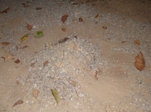 家の私の駐車スペースの脇にネコが山をつくりました。そうなんです!山の中には、クサイものが埋めてあります。ここ幾日か前から土を集めて山をつくるようになって臭くて、踏んだらもっと悲惨なことになるので、砂利なら山をつくらないだろうと敷いてみたところ、もっと高い山になりました。周囲をぐるりと前足で集めたあとがあり微笑ましくもあるのですが、中身が中身ですから対策を考えます。