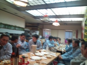 当社は、28日で基本的に仕事納めでした。現場によっては29日も動くところもありますが、私は、今年(も)まだ机の上の片付けもできていなく、年賀状も始めたばかりです。そんな一番最後の勤務日に会社の忘年会をしました。会場は豊丘の管理センターの横の幸運来です。センターに車も置いておけるし、何よりこのピンチで、忘年会をやるかやらないかという事情もありますので、安くてたくさん食べれるところに限られました。おかげで一年のうっぷんを晴らすように生ビールや紹興酒、焼酎、最後にラーメンまで自由にオーダーして飲んだり食べたりしました(それでも一人2.5千円!)。来年は幸運来ますように!