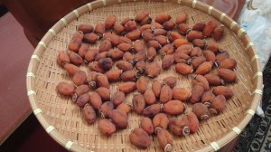 柿が干せました。一応この状態で干し終わっていて、手で揉んであります。と言っても、私がしたはずもなく母がやってくれたのですが、中にはチラホラと白い粉が吹いてきたのもあり、母は黒いようなのを摘んでおいしいと言って食べていました。干し柿も、生の甘柿も母は柔らかいのが好きですが、私は固いのが好きで、干し柿は白く粉がまんべんなく吹いて噛むのもエライくらい固いのが良いんです。ですから今のうちはまだ食べません。元旦くらいから惜しみながらほぼ一人で食べます。もう直です。
