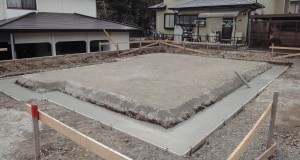 喬木村S邸に着工しました。ここは田んぼを埋め土した造成地なので正直地盤はあまり良くないだろうなと思っていました。それでも聞けば、田んぼの表土はめくってあると言うし、地盤調査では土間コン基礎でOKがでていましたので、根切り底の良いことを期待していました。現場でいつものように掘って均してある外周を強く踏んでいくと、北西のコーナーが柔らかいので様子見しながら掘ってもらいました。すると、水分が多い泥のような土が出てきました。幸い深くなくて範囲も小さいものなので問題はありませんが、造成工事でブロック壁を造ったときによけた土との間に雨水がたまり、宅地に注してきたのかもしれないので、基礎を埋めた後にその処理をやってもらうようにお願いしてきました。
