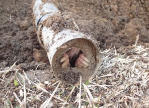 会社の芝焼をして1週間くらいになりますか?ここのところモグラが土を山にしなくなったので、週末には土でも入れてローラーでもかけようかなと思うようになりました。それにはモグラが仕掛けた罠に捕まっていなければ違う方法を試さなければいけないし、万一捕まっていてくれたらラッキーだし、と薄い期待とともに掘ってみました。そうしたら、なんと!手が見えるではありませんか。つついても動かなくて死んでいるようなので、ブリキの筒から出すと筒一杯の大きなモグラで、死後1週間くらい経つでしょうか?チビとブチが寄ってきたので素早く埋めました。やりましたと芝を荒らした犯人を捕まえて嬉しい気持ちですが、手が可哀そうでした。ちなみに、超音波とかいう撃退機は、設置した次の日から何の効果も無いことが判明しました。