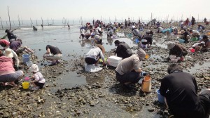 恒例になりました「まるさん潮干狩り」に行ってきました。場所はいつもの知多半島の矢梨海岸です。今日は潮があまり絶好ではありませんでしたが、9時~12時頃が拾い時らしいので、こちらを早朝6時過ぎにバス3台で出発しました。天気には恵まれて絶好の潮干狩り日和で、貝がたくさん採れれば最高なんですが、実は本当に大きい貝が、もういいと言うほど採れました。この潮干狩りは、社員の家族親睦を兼ねていますので、お客様も家族連れでこられる方が多く、みんなで和気合いあいの中、買い物やバスの車中もクイズなどで楽しい一日が過ごせました。来年も開催できるように頑張りたいと思います。