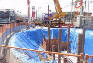 ここのところ、いくつかガソリンスタンドのタンクの入れ替えをさせていただいています。これは、消防法の規制で、古いタンクを油漏れを防ぐために交換の対策をしなければならなくなったことによる工事です。この規制は、昨年の震災の起こる前にできたのですが、震災でオイルタンクが浮いたというニュースはあまり聞きませんので、タンクの劣化などによる割れを主に想定したものなのでしょう。このような、空になったとき水に浮くものは、地震の液状化により地面に浮きやすいです。下水の配管なども同じで、普段は土の重さで押さえられていますが、振動で土が水と混じり液状になったときには、水中と同じように浮力がついてしまうのです。千葉の団地の下水道は復旧できたのでしょうか?