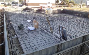 上郷H邸の配筋を見ました。ちょうどJIOの検査中で、お施主様や弟さんもいてくれて挨拶もできました。このお家は平屋建てですが基礎の構造は鉄筋の配筋も2階建てと同じです。クレバリーホームの基礎は1階の内部の壁に筋交いがあるなしでその下の基礎の立ち上がりの部分の配筋の仕方が決まっています(3階や大きな空間を造る時のラーメン構造の場合は都度計算されますが)。それで、厳密に言えば当然に平屋の方が2階建てよりも基礎は軽くてよいはずですが、構造が同じなのです。当然安全方向に考えているからですが、正直どうも過剰には見えてしまいます。まぁ、しかし考えてみれば、これを正規に減らして見ても立ち上がりの配筋が少し変わるくらいなので金額的にはごく僅かでしょうね。ご理解下さい。