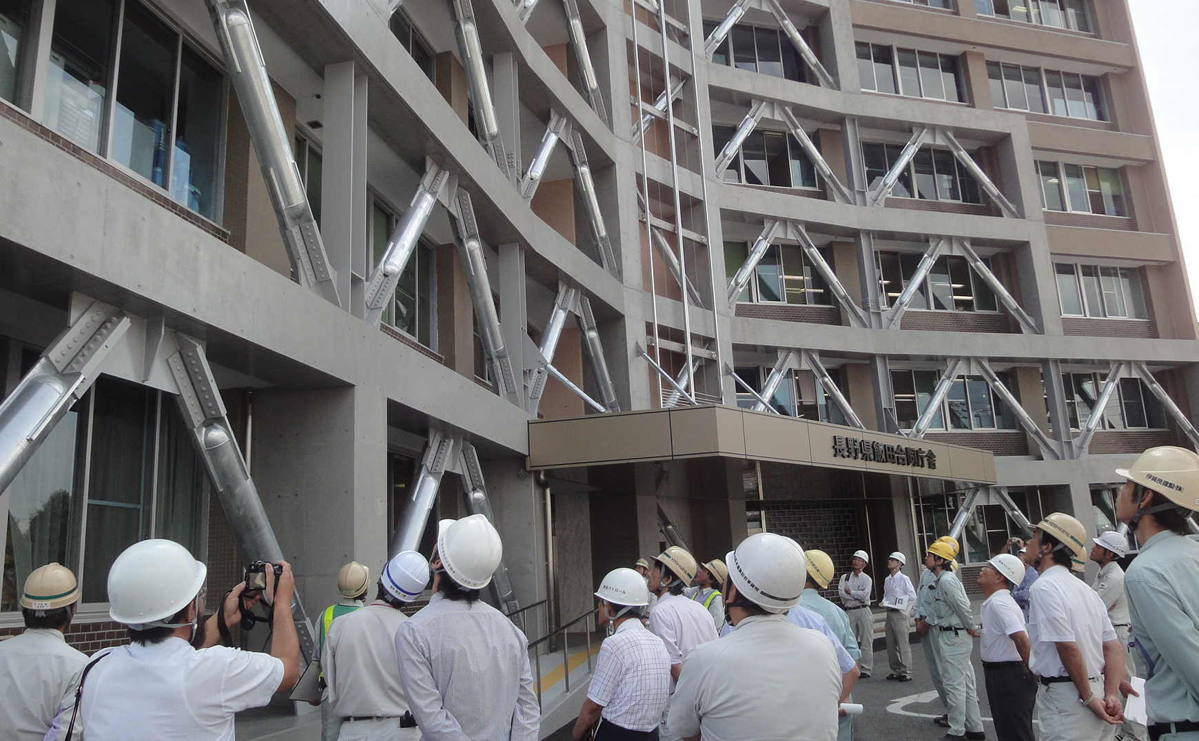 現在、飯田合同庁舎(県)で耐震改修工事が施工されていて、良い機会だから耐震研修会をやろうということになり、昨日行われました。主催したのは飯伊建築業協会で建築士会にも