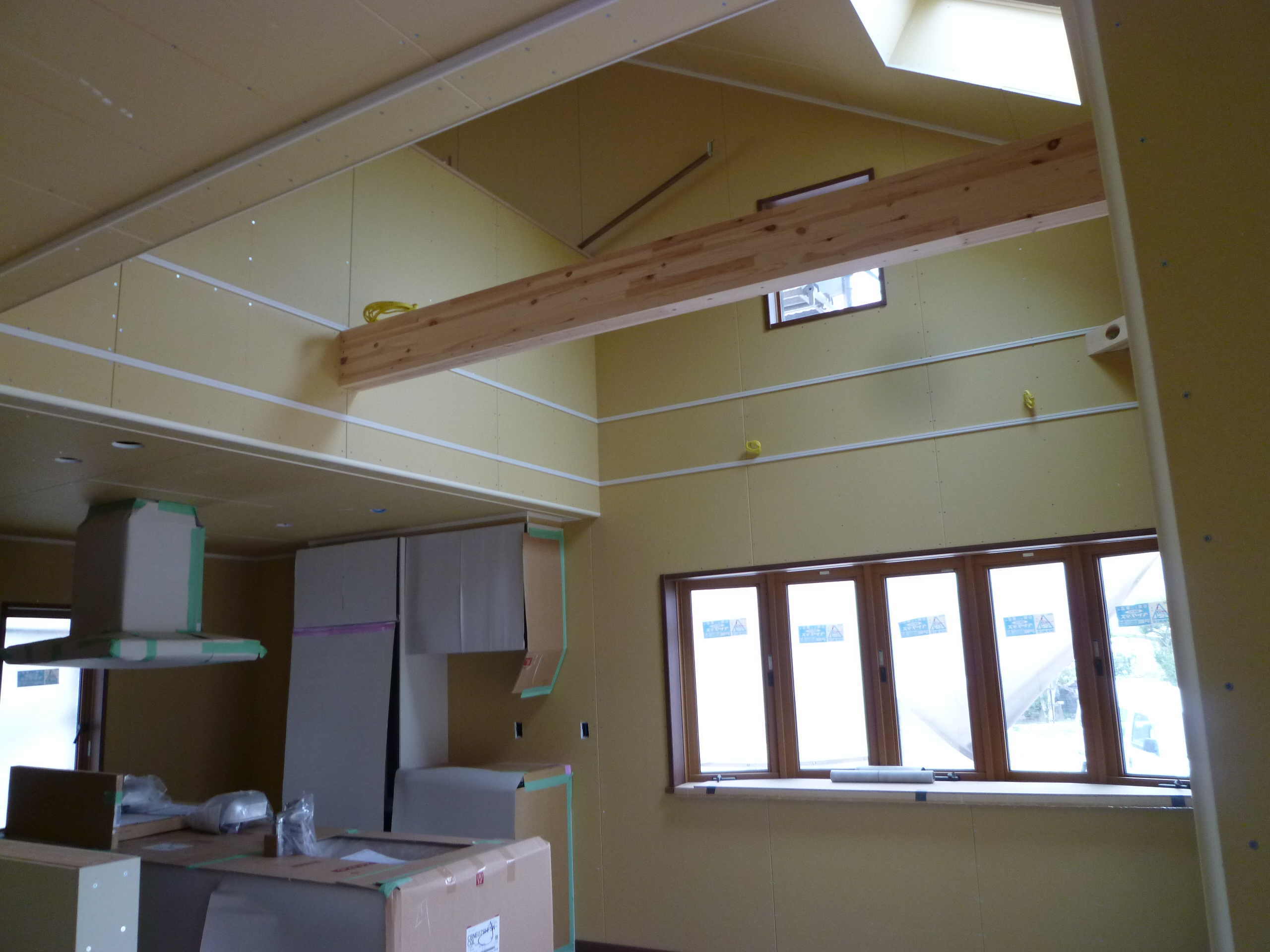 デカっ! 今朝は、福与邸の社内検査に始まり、川路 I 邸と中村 I 邸の木工事検査、それから後は一人で大瀬木H邸とM邸の木工事の様子を見てきました。その中の川路 I 邸は大きなお家です。LDKは吹き抜けになっていて、ストーブも置かれます。大きなボウウィンドゥも雰囲気が出てきました。玄関ホールだけでも福与さん家の寝室以上ありますし、和室に至っては倍の面積があります。それだけ大工さんも手間もかかっています。余裕と工夫でリッチなお家になりそうです。大いに期待できますね。