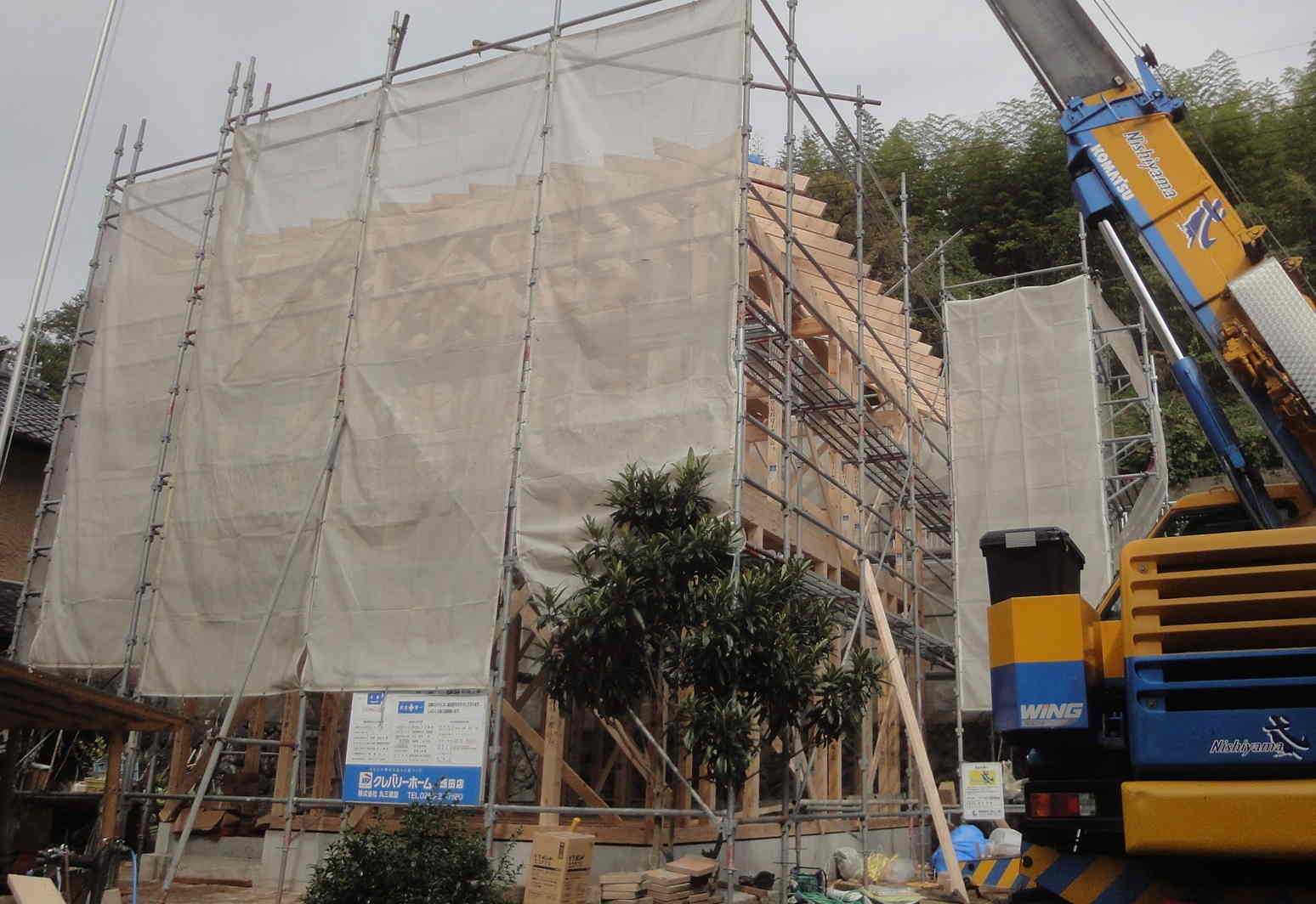 阿智のO邸の建て方が無事できました。このお家は、総二階ですが割合小じんまりしています。それで今日の大工さんの編成は、塩沢さんいわく選りすぐりの若手5人で行ないました。山田さんや古瀬水さんも入っているので平均年齢は少し上がりますが、若いと言われればそうかもしれないので作業の進みも早く感じました。実際午前中には垂木がまとまっていて、3時前には早くも完了しました。素晴らしいです。builtupao