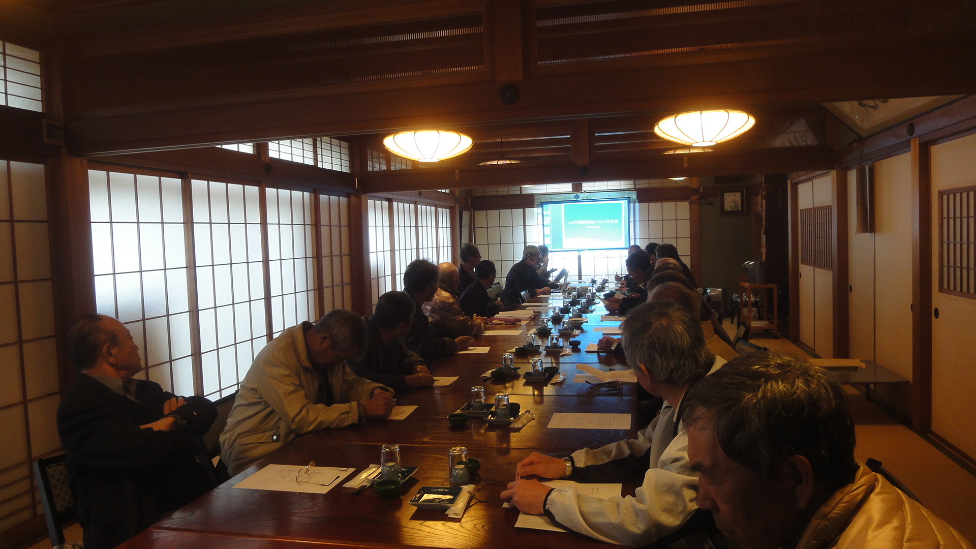 下伊那漁協の北部5支部のブロック会議が行われました。各支部の役員5名と本部理事の出席なので30人くらいですか、私も3回目なので少し顔見知りの方が増えました。まず、組合長が今年の鮎の放流方法について琵琶湖産と海産を主にすることを、色々なデーターをプロジェクターで映し解りやすく説明しました。去年も県の水産試験場で生産した稚魚は冷水病にやられて中期以降ほぼ全滅しました。考えてみれば、県のは無菌状態で育てて何代にも亘り交配を重ねているので、無菌のまま成魚にして食用にするんならともかく、それを雑菌いっぱいの川に放流するのは無謀と言うもんです。これも税金なんですが…。それで今年は稚魚が良くなることに加えて時期も早まります。それにより t あたりの匹数が1.5倍以上になるのと、川の状態が良ければ成長も早いと思われます。放流直後に大雨が降って白濁が長びかなければ-と言う神頼みのところはありますが、大いに