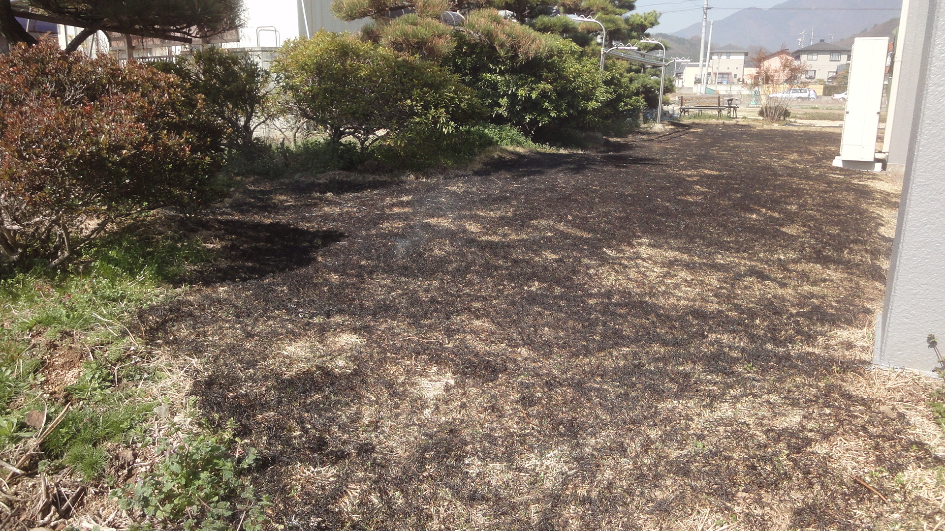 しようと思い昨日行いました。風が無いうちでないと危ないので6時半に火をつけようとすると、見た目より湿っていて火が消えてしまいました。それで陽も当たってきたので待つことにして9時過ぎになると、今度は少し風にあおられましたが無事にできました。先日来、ようやく草取りが一巡したのでしたが、焦げたあとには雑草が生えてきていて目立つところを抜きました。今度は友人の芝屋さんから仕入れた除草剤を撒きたいと思います。