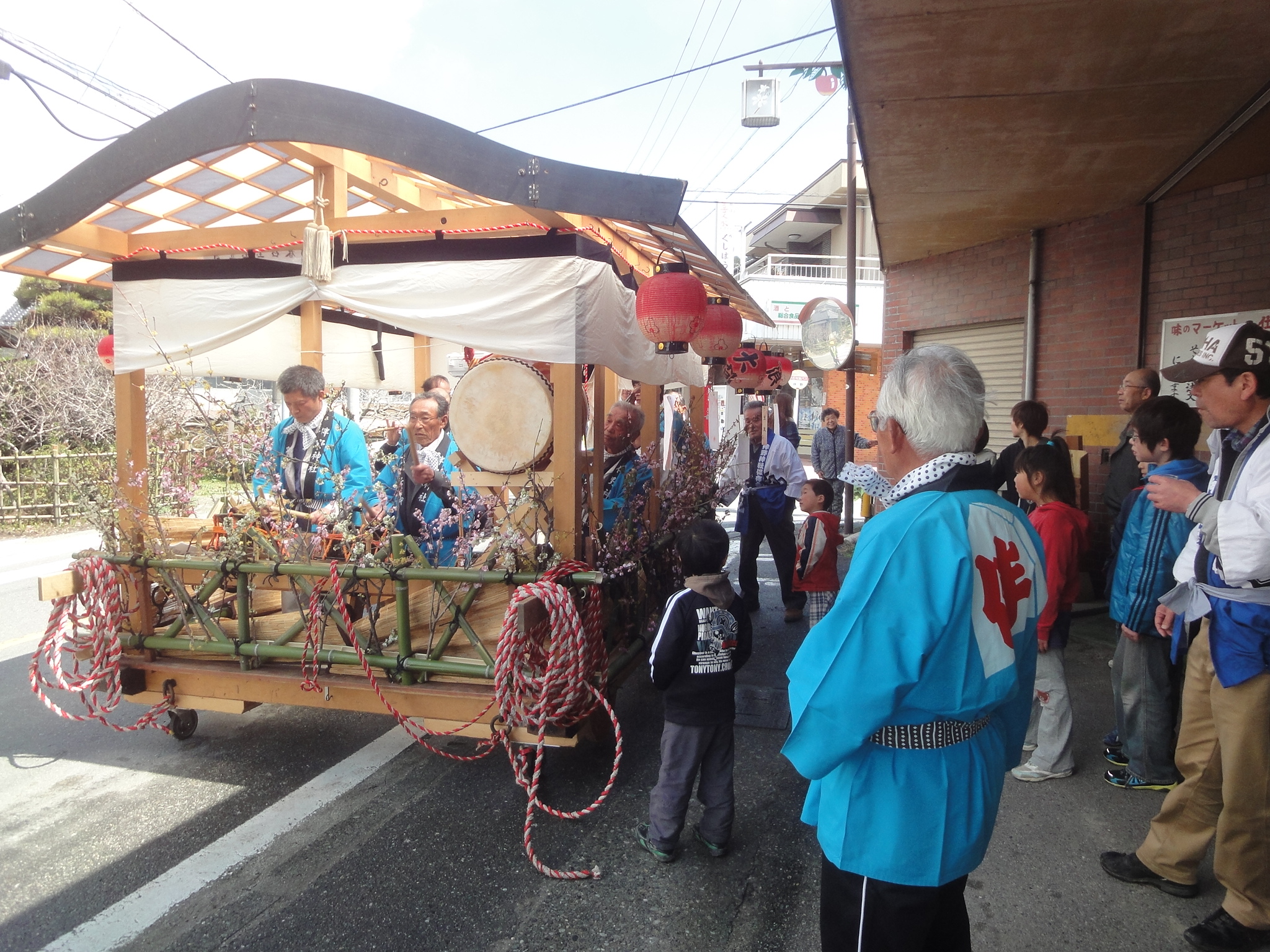 ちょうどこの土日は、みぞれ混じりの雨があったりで寒いお祭りでした。今回は、準備の旗立てから屋台の飾り付けやら片付けまで当番地区がやってくれるので、お囃子のヘルプさんとしては楽チンでした。私は、5回の練習に皆勤したので本番にも出なければと、土日とも始まりの小宴会から出席しました。ただ肝心の演奏は首が痛むこともあり少し遠慮気味にやりました。と言うのも、お囃子には結構年輩の方が楽しみで出て来てくれるので、残り時間のこともあり優先させてもらったのです。それで私の練習の成果はと言うと、やはり動きながらということもあり勝手が違いましたが、まぁーそこそこには出来ました。このお祭りは寒かったせいか?屋台を引いてくれる子供達もパラパラで寂しく、いつまで同じように続けることができるのか危惧を感じました。お祭りは、地域の人たちや子供たちにとって楽しいものでなければ価値がないし、義務出席が多いようではいけませんね。DSC07635
