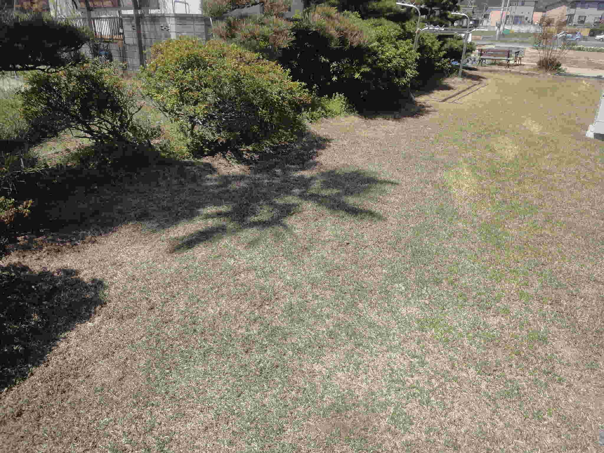 もう10日くらい前になりますが、芝と周りに除草剤を撒きました。今回初めて、芝の中に生える雑草を枯らす2種類のものを混ぜて撒いたのですが、グラトップとザイトロンと言うなんでも雑草を枯らすものと種ができないようにするものだそうで、プロの芝屋さんいわく1年に2回撒けばいいんだそうです。それで散布する時に、普通(芝も枯れる)の除草剤と混じってはいけないので噴霧器も買ってきたのですが、その容量をちょっと勘違いして除草剤の濃度を濃くしてしまったので、芝が枯れないか心配していました。おかげに、ここんとこだいぶ青くなってきたので何とか大丈夫そうで、周りの雑草も段々勢いがなくなって効果が表れてきました。これでイネ科の雑草にどのくらい効くのでしょうかね?少し楽ができればいいのですが。