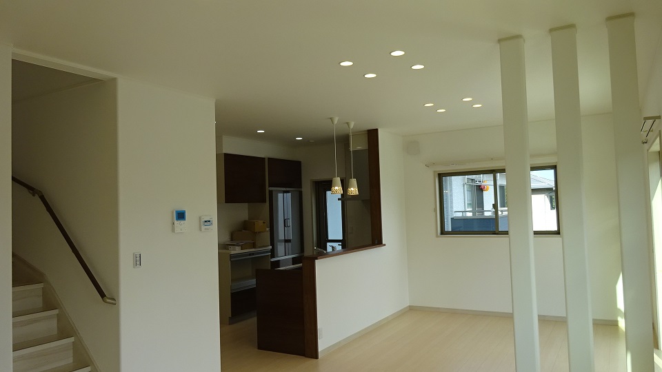 同居 大瀬木S邸の完成社内検査を行いました。落ち着いた上品な感じのお家になりました。外観はちょっとシックで私好みですが、内に入ると明るくてさわやかな心持ちになります。玄関と居間の一部にエコカラットが貼ってあり、聞けば床は犬が滑らない板だとか。台所わきの収納下のくぼみももしかしてワンちゃん用ですかね。楽しそうです。ところでここの敷地は新しい4区画の分譲地で、U社、T社、P社とそれぞれが完成しました。あっと言う間に景色が変わりました。