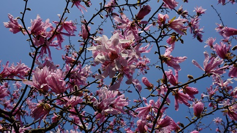 こぶし 今年は色々な花がきれいに咲きましたね。桜もモクレンもこぶしも、黄色い花も白い椿も満開、ついには花桃までも咲き始めました。キュウイや柿やプルーンの芽も出てきました。シャインマスカットもつぼみが膨らんできました。あまり気候の変動がありませんように願います。