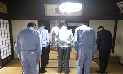 耐震 古いお家で耐震リフォームをするのにはけっこうなお金がかかります。これからお世話になる豊丘村河野のT邸も100年くらいは経っていそうな立派なお家です。古い家はどこでも養蚕をされていたので造りはしっかりしているのですが、間取りは田の字型で柱や壁が少なく基礎も石なので揺れには弱いです。基礎を耐震化するには大掛かりな工事になり大きな費用もかかりますのでダンパーで揺れを吸収します。設計は古民家の特異な梓設計さんです。お祓いをして工事の安全と暮らしやすいお家ができることをお祈りしました。
