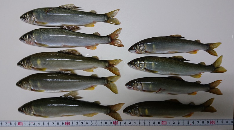 終盤 お盆が過ぎたらいきなり朝晩寒くなってきました。日中はまだまだ暑いんですが、冷え込むと鮎が秋だと思ってしまうんですね。居場所も浅いところから水深のあるところに移りつつあるようです。松川で釣れる鮎もだいぶ大きくなりきれいな魚体ですが、おとりに使っていると大きいものは赤く色が付くようになってきました。友釣りもそろそろ終わりに近づいてきて秋の気配が進むにつれて寂しさも募ります。