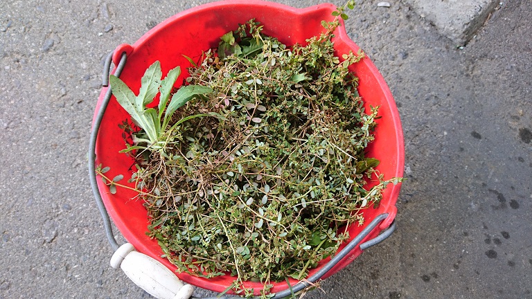 芝生用の除草剤(同じイネ科には効かない)を撒いたのはそんなに前ではないと思うのですが、芝は青々としているし、手入れはまだ大丈夫だろうと思っていました。芝の雑草取りは、どんなに小さな草でも一本一本抜かなければいけないので手間がかかります。自分で植えたものなので仕方ないですね。腰を傷めます。