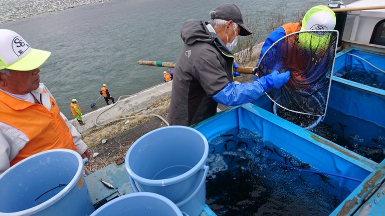いよいよ鮎稚魚の放流が始まりました。放流したからといって釣れるとは限りません。なにせ大雨が降ると流れたり死んだりしてしまうんですね。これも運しだいのところがあります。去年も、放流後直に大雨にやられました。良かったのは、飯田松川くらいですか、肝心の天竜川本流で友釣りができる期間は10日