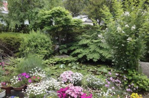 今年も睡蓮の花が開き始めました。睡蓮の葉は冬の間は枯れて腐ったように浮いて氷に閉じこめられたりしていますが、暖かくなるとその腐ったような葉っぱの緑が段々濃くなってくるから不思議です。その上に覆い被さるように繁ったバラの木は白い小さな花をたくさん付けているのですが、きれいじゃないので切ったほうがいいと母が去年言ったものです。それもあんまり可哀想だと冬に少し手入れしてあげたら、芽がたくさん真っ直ぐ伸びて茂みになり、まだどんどん伸びて何かに変身しようとしています。こういうのもいいじゃないですか?池の縁にはお母さんのプランターの花。その横には、ツルの赤いバラが満開で私の車を迎えてくれます。1年に少しだけ会える赤いバラ。