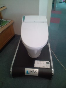 この便器は、この土日にライファでちょっとした催しをするので、松本のショールームで貸してくれたデモ用のものです。これがなかなか優れものです。私がお気に入りのところは音楽が流れるところです。しかもSDカードでお気に入りの曲を聞けるので安らいだ気持ちになれると思うのです。他にも過ぎるくらい色々な機能が付いていますが、掃除がきれいにできる点もいいです。実際に用を足せば、女性でさえも便座の裏を汚してしまうのは仕方のないことで、汚さないことは不可能です。だからきれいに掃除をするしかないので、会社でもその点は自分の次に使う人のためにきれいにしましょうと、うるさいくらいに言いあっています。だから、便座の奥がリフトアップするのと、15年も便器の撥水機能が続くのは掃除が楽で清潔です。それから6秒で便座や線浄水が温まるという節電機能も驚きです。こんな小さな便器は定価で三十数万円もするのですが、隅にほこりがたまっていないようなきれいな便所ならホントにレストルームになりますね。