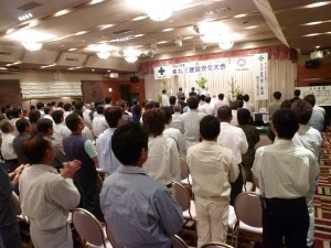 今年の丸三建設の安全大会をシルクホテルで行いました。安全大会は、仕事で一番大切な安全に対する意識を高めるために年に一度、7月の安全週間の前に協力業者の皆様に集まってもらい社員と共に行う重要な行事です。今年は総勢150名と新聞には出ましたが実際は当日の都合などで137名で、後の懇親会は80名で業者さんと社員との親睦が図れる良い機会になりました。私は挨拶で、まず無事故のお礼を言い、災害時の緊急連絡手段、会社の今年の目標でもあるトイレの後始末の徹底で「気遣いの心を育てる」ことにより、周りの人の作業がやりやすくなったり安全につながり、お客様にご満足していただける仕事になるというようなことを話してお願いしました。安全な仕事ができなければ、お客様にはご満足いただけません。