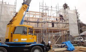 喬木村のS邸が上棟できました。土曜日が天気が悪かったため延期されまして、隣の和美さんのかわずざくらが満開の横で無事にまとめることができました。今日は、S様が休みをとってくれて立ち会ってくれましたし、奥様も、ご両親さまも、おじい様?も嬉しそうに見ていただけました。ちょっとの間のご挨拶でしたが、皆さんの期待が伝わってきて責任を感じました。大工さんは同じ村の桜井さんです。良い仕事させていただきますのでよろしくお願いします。