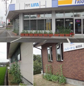 緑のカーテンがなかなか伸びてきません。ハウスドゥ!では北林さんが中心で水や肥料もやってくれていますが、何故か去年より遅いですね。私だけの感想でなく、みんなが言うので間違いないと思います。クレバリーホームでは、事務所の入り口の横はちょっとしか植えてないのですが、正面から見えない東面にはゴーヤやキュウリがあり、きゅうりは食べころの細いのが1本なっていました。既に何本か収穫して両順子さんが持ち帰ったそうです。順子さんたちが今年は土に植えてくれたのですが、やはりアサガオは伸びが遅く、下の方でいくつか咲いている程度です。梅雨が明けないとカーテンにならないんですかね。