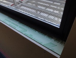 龍江のN邸の外壁下地防水検査を行いました。ここの大工さんはあきらさんです。あきらさんはウチの大工さんの中でも工事中の現場が特にきれいです。したがって仕事も当然きれいです。性格の問題ですね。外回りも完璧ですが、内部も隅々まできれいに納めてくれてあります。窓回りの結露防止の断熱材も隙間なく収まりそうです。このサッシの化粧枠の裏側、特にサッシ上下には構造上空間ができてしまいます。その空間を埋めておかないと冷えやすい所ですから結露の恐れが大きいのです。壁の中は見えませんが、空間ができないようにしなければいけません。それにしても、ここは森の中で涼しい所です。のんびりしていたら蚊にさされました。