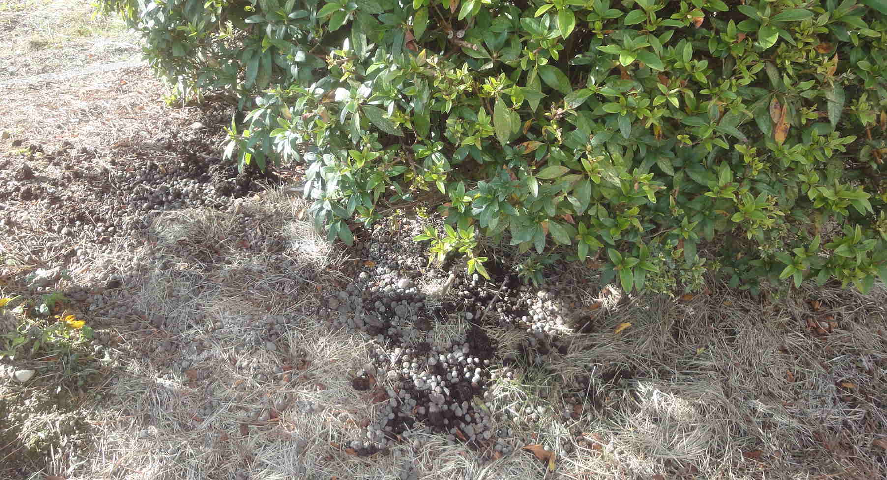 会社のツツジとかドウダンに肥料をやりました。肥料は鶏糞の粒で、花がきれいになるとお隣のキャロットさんが以前教えてくれたものです。ツツジは秋になってから(しか来てくれなかった)庭屋さんに刈ってもらったのですが、その時に前から迷っていたことを聞きました。それは、ツツジは春に花が咲きますが、その頃には葉っぱも伸びてその陰で花が咲くのであまりきれいに見えないのです。それで、どうせ毎年葉を刈るのだから、葉が伸びないように冬の内に葉を刈れば中の花芽は残り、花が現れてきれいに見えるんじゃないかと思ったのです。そうしたら庭屋さんは、花を見るか、木を育てるかどちらかと言う答えでした。やはりそうそうは上手くいきませんので、とりあえず植木や松にも栄養をあげることにしました。少し