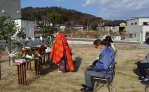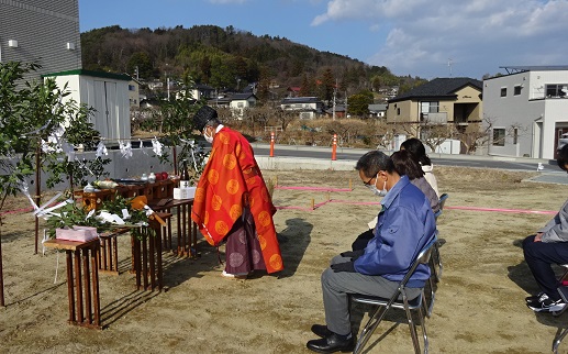 ひだまり 桐林のK邸の地鎮祭が行われました。ここは国道沿いJAのAコープから歩いて直ぐの東に位置します。K様ご夫妻は私と同年代(と言っても大分下ですね)で、初対面でも親しみやすかったのですが、お店の近くの立地がやはり将来的にも便利そうです。風があり寒い日には違いなかったのですが背中に受ける陽は暖かかったです。正月以来、日の出の遅い頃より20日くらい過ぎたので太陽の位置も南アルプス1山くらい北になりました。良い天気に恵まれました。よろしくお願いします。
