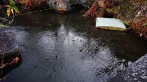 初氷 今朝は冷えました。昨夜の予報では0℃でしたが、夜のウォーキングから帰ると晴れて冷え込んできたので-2℃になるよと話していました。案の定-3℃にもなり、今季初めて池が凍りました。中央アルプスも冠雪がきれいでいよいよ冬の景色になりました。これで伸びた草も凍って枯れると秋田さんは嬉しそうでしたが、果たして本当にそうなるかな。
