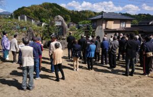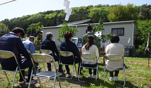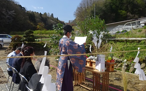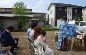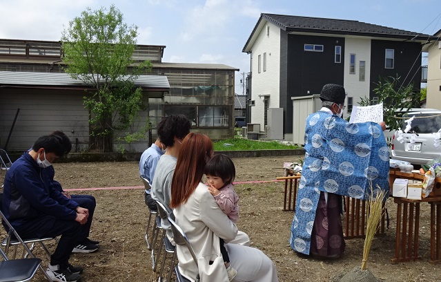 縁つながり 松川町でM邸の地鎮祭が行われました。名前の響きが似ているなぁと思っていたら、やはりM様は去年松川で建てていただいたM様の弟さんでした。そして奥様はなんと会社の原さんの娘さんでした。縁がつながっていますね。式にはご両親もお見えになり賑やかにお祭りができて良かったです。この辺りも住宅が増えているところです。学校に近いですからね。