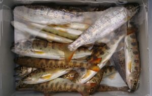 早起きの成果 休みに入り南部の川に釣りに行ってきました。連休なので朝一番に狙ったポイントに入れるように早起きしました。下伊那漁協は親魚放流の成果が出てきて、どこの川でも釣れるようになりました。ただ阿智川だけは異常に魚の姿が見えないようです。メインの昼神温泉から下流は去年も鮎が育ちませんでした。以前は国道151号の上下に鮎やアマゴを狙いに行ったのですが、一見きれいに見える川が死んでしまったようです。こんなにきれいな川はそうそう無いんですが残念です。