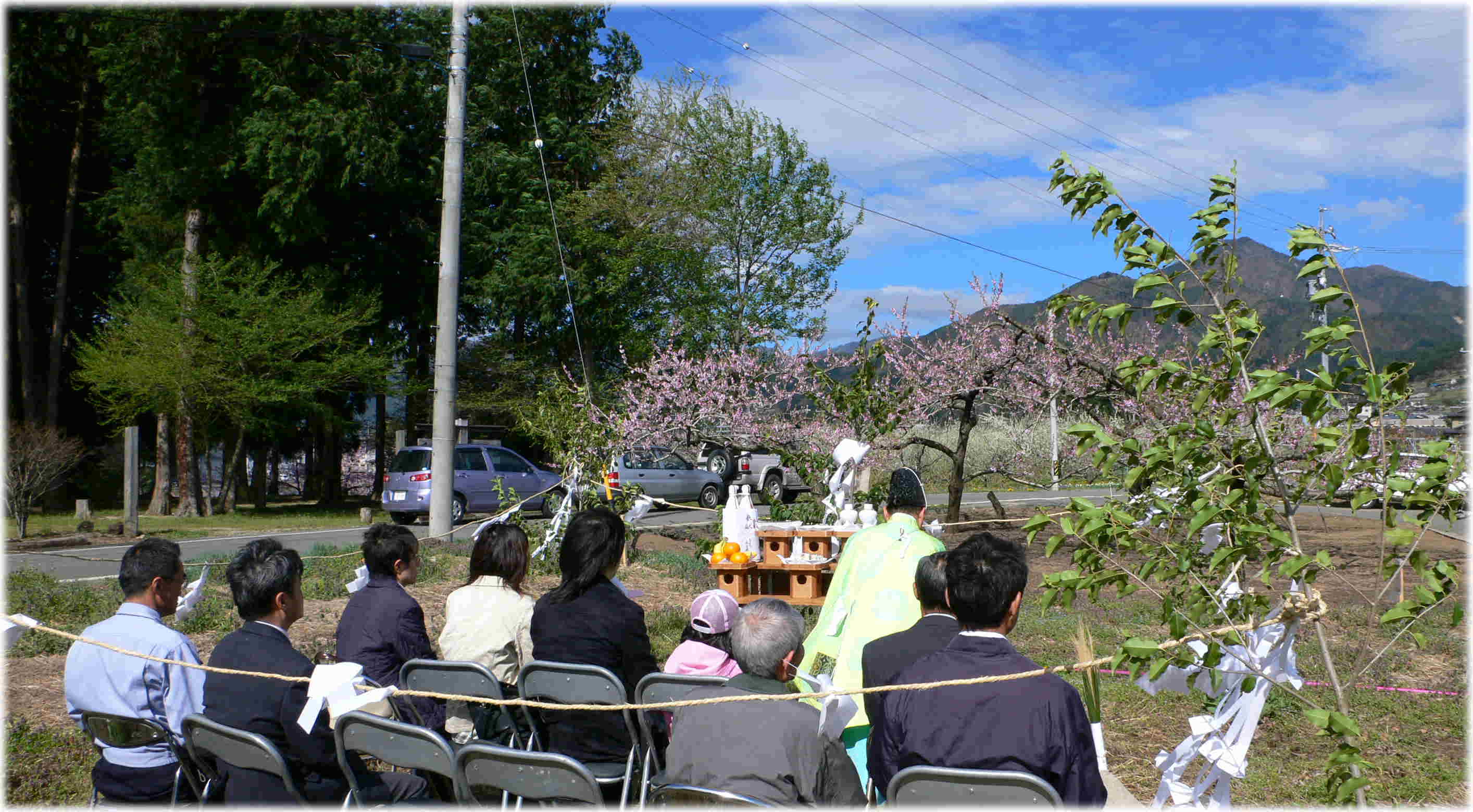 今日は朝一番で、上郷のK邸の地鎮祭をしました。ここの土地は果樹園と住宅地の境目のところで、神社が南西面にあり、風越山が西に望める、陽当たりの良い敷地です。奥様のご両親が高森町なので、ここからの便も良く、学校へも程よい距離です。式にはご両親と、なんと94歳!のおじいさんも出席していただき賑やかにできました。四方払いではかわいい姉妹も色紙をまいてくれました。正直、私はこの色紙をまく時いつも少し抵抗を感じます。ほんと小さな紙なのですが、風で飛ばされたりするので気が引けます。まぁ、でも紙だから腐れば自然に帰りますからネ、お許し下さい。と言うわけで、これから工事にかかっていくわけですが、皆様のご期待に添いますように一生懸命頑張りますのでよろしくお願いします。