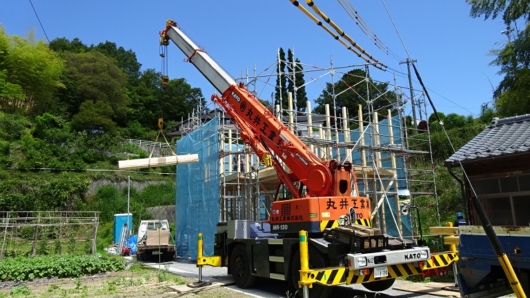 昨日は雨の予報でしたが、飯田の辺りはほとんど降りませんでしたね。それでここ泰阜の若者定住促進住宅の建て方も一日延びましたが、泰阜ではけっこうな雨が降ったらしいし、根羽でも屋根の仕事に出かける人