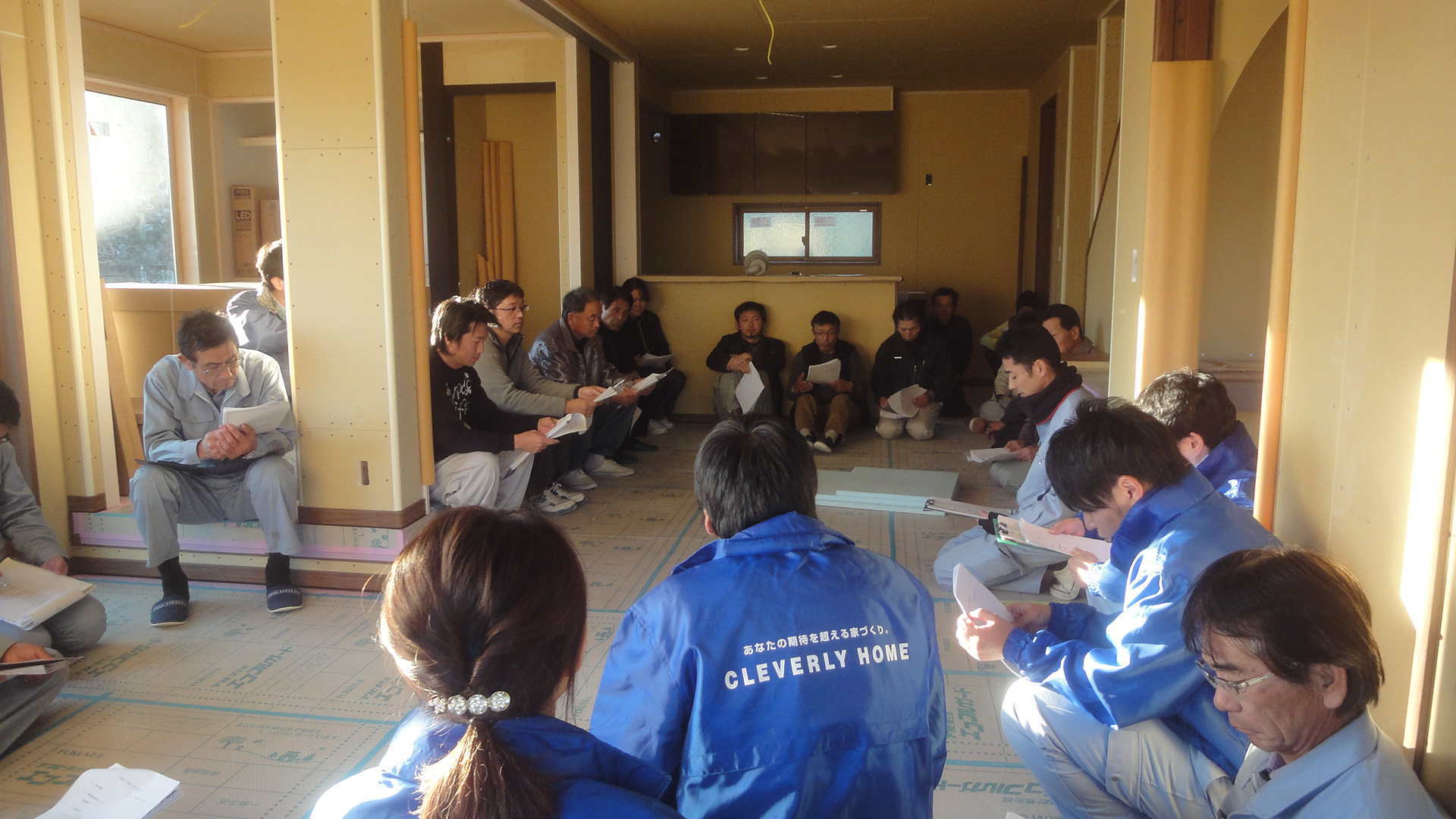 棟できました。実は昨日の大安に予定していたのですが、午後から雨の予報があり、今日は間違いなくできると踏んで塩沢さんが延期を決めました。昨日は、結果的にはやってできないことはありませんでしたが、朝から風も強かったので熊谷棟梁も喜んでくれて、大工さん達も上着を脱いでの作業ができたくらい暖かで良かったです。それでも大工さん8人で完了メールが届いたのは、もう日が沈み5時近くなってからとは、なかなかな?お家ですね。安全な作業をありがとうございました。