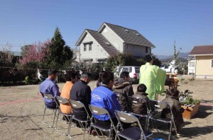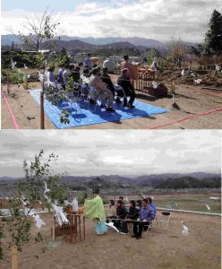 本日は大安で日が良く、2軒の地鎮祭が行われました。始めは飯田市下瀬に建設する三穂地域振興住宅の神事で、先ごろの提案競技で当社の案(クレバリーホーム)が採用された工事にいよいよ取り掛かります。この仕事は美穂地域からの要望を飯田市が若者定住のための事業として行うもので、地鎮祭には市の建築課の方や支所長、三穂地域のまちづくり委員会の皆様、居住される方やご家族のみなさんが参列され賑やかにできました。午前中は天候の様子が悪かったので急遽テントを用意して望みましたが、建築課長も言われたように暖かくなって助かりました。それから高森町でU邸の地祭りが行われました。ここは造成後まだ間がありませんが、駅も近く、日当りも景色も良く、豊丘のおとうさんの実家が正面で、市田の灯篭流しの花火が足元から見える特等席です。どちらも穏やかないい敷地です。