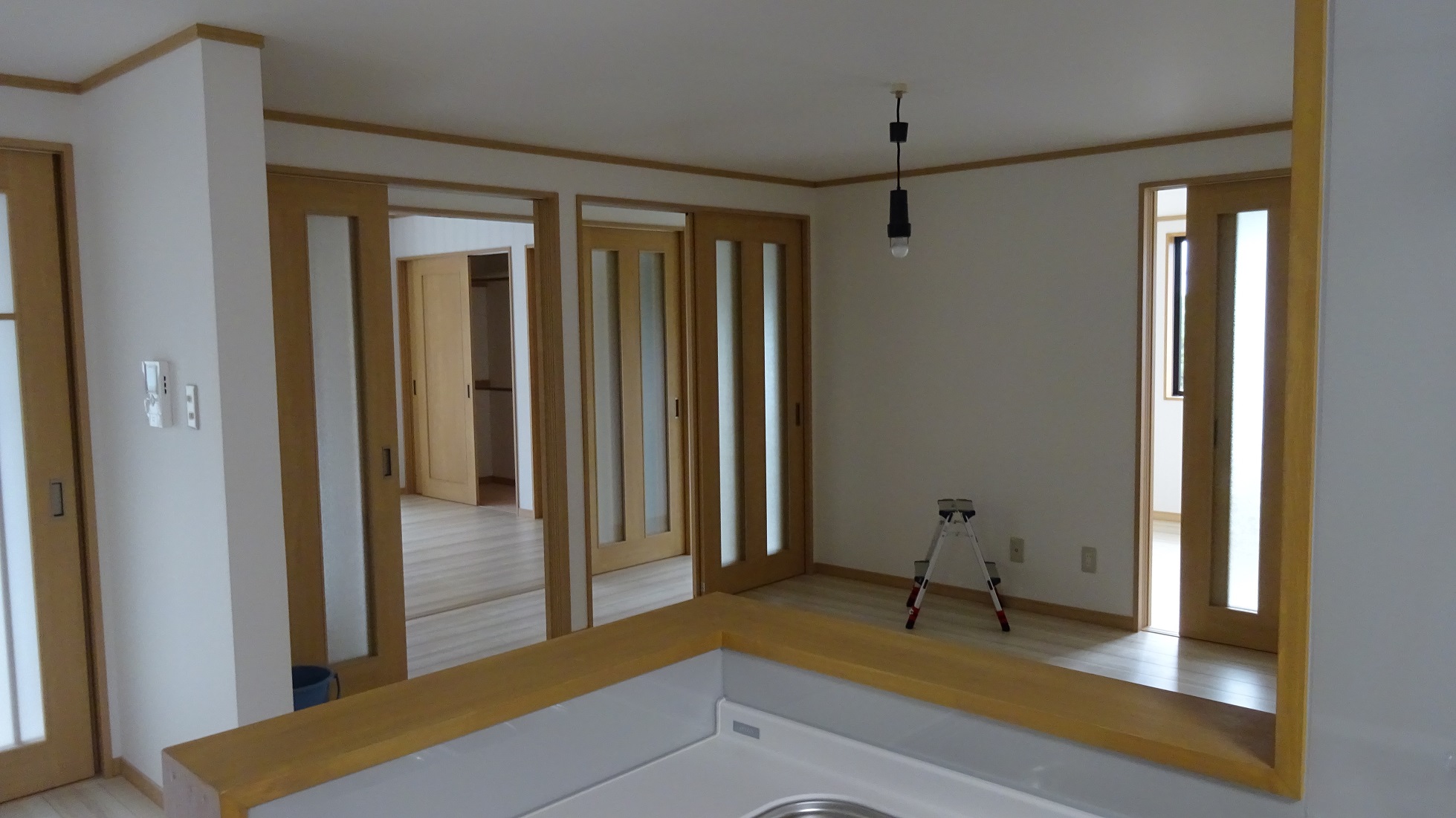 アフター 豊丘村でリフォームさせていただきましたM邸の完成社内検査を行いました。このお家は、M様が私の車代くらいの土地付き中古住宅を買われたものを大改装させていただきました。外観は後でM様ご自身で手を入れるのでほとんど変わっていませんが、内部はビフォーアフターのように驚くほど変身しています。前はふすぐれた高度成長期の小さい一戸建てのような哀愁を感じるような間取りでしたが、明るく広々として浴室も近くて使いやすくなりました。TV番組は値段が倍ほどかかったと訴えられているようですがコスパ高いです。