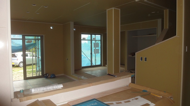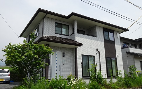 久しぶりに白いお家になりました。豊丘村田村の郵便局の裏手の西側で、豊丘では災害の恐れが少なく、スーパーや役場などが近くほぼ一等地と言える所に完成したH邸の社内検査を行いました。外観は白いモザイクタイルがまぶしく、玄関に入ると、白っぽい色合いが居間や水回りにつながって明るいさわやかな雰囲気になっています。二階には書斎などシックなところもところもあって変化があり、収納も多く、ここも事前にかなり練られています。特に畳の小上り