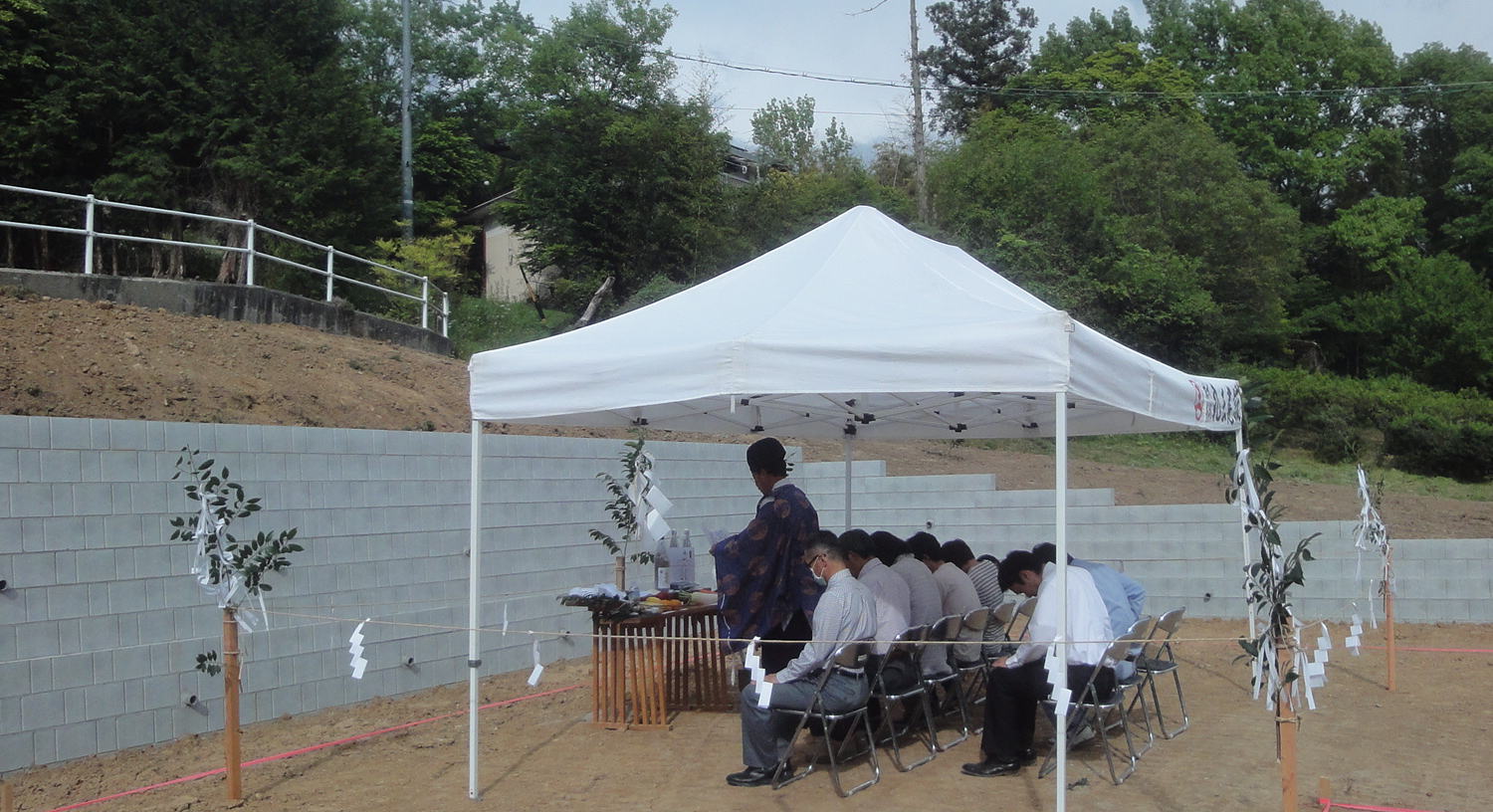 高森町で下伊那厚生病院の医師住宅の地鎮祭が行われました。厚生連様には今までにも保育所や医師住宅をお世話になっていましてありがとうございます。おかげさまで今日も良い天気に恵まれました。この敷地は病院から徒歩圏内の高台に位置し、周りは閑静な住宅地になっています。河岸段丘の先端より少し下がった緩やかな傾斜地で、元々は切り盛りした宅地だと思うのですが、幸いにも地盤調査ではベタ基礎OKの判定が出ました。その