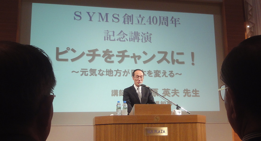 元宮崎県知事の東国原英夫さんの講演を聴きました。今回は、SYMS(信金若手経営者の会)創立40周年式典があり、その記念講演会でした。2年ほど前にも飯田でありましたが、その時の話の内容の記憶はあまりないのでそんなに面白くなかったんだと思います。話の内容はいつも同じと言う人もいますが、結構興味深かったです。と言うのも、東国原さんは小学生のころからお笑い芸人と政治家になる目標があったことや、ビートたけしを天才と見抜きチャレンジして一番弟子になったことなどおちゃらけで無い前向きな話が聞けたからです。それはそれで、SYMSなんですが、私は24代と言うことで25周年の時SYMSアピール2000をつくりました。これは会のある毎に唱和する理念的なもので、概ね5年毎に気分一新するため変えていました。それがその時結構思い切って変えたので今まで15年使われていました。それがようやく新宣言になりました。ちょっと寂しいかな。