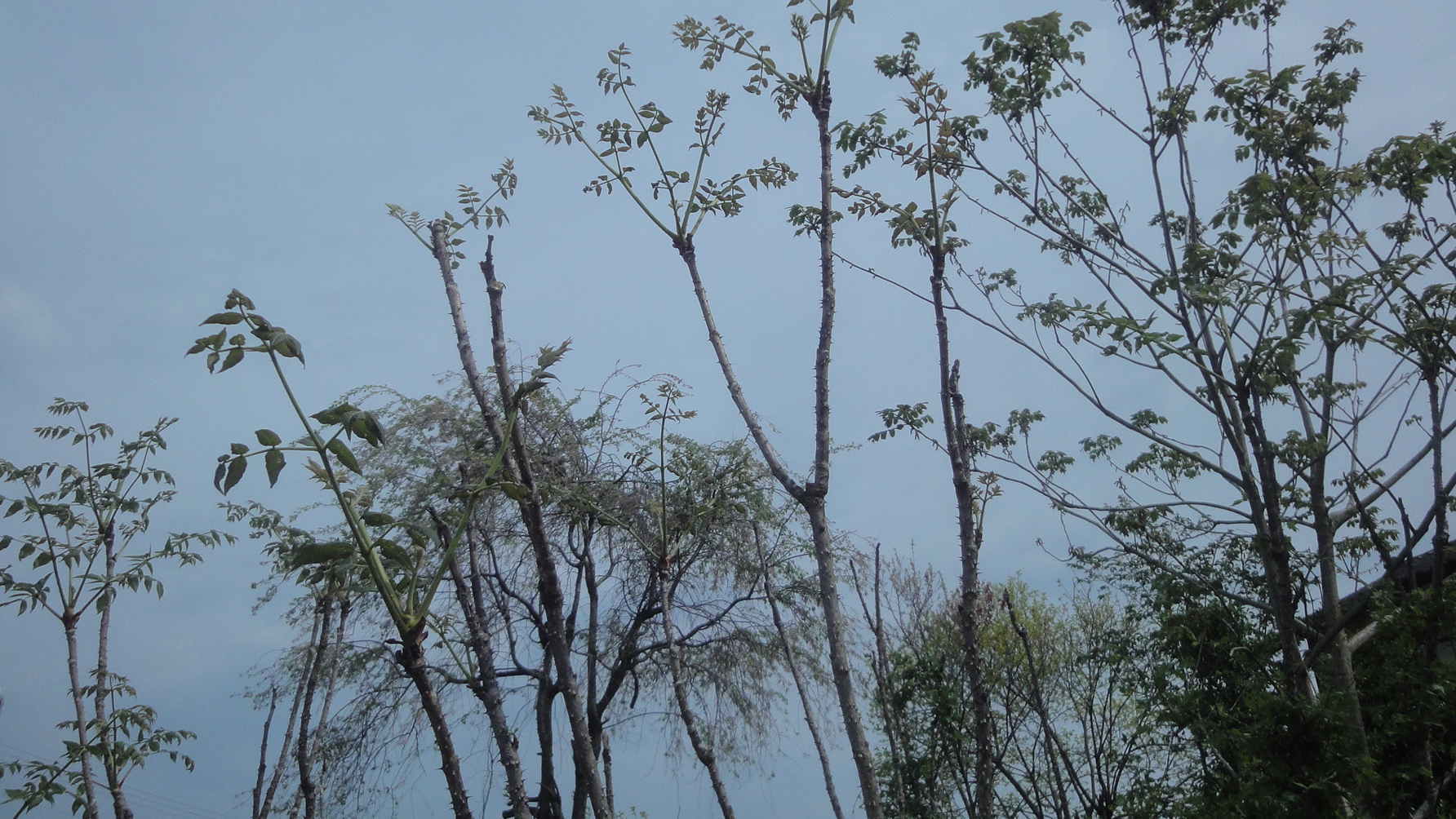 10日前に上棟出来ていた下条S邸の下屋の防水検査に行ってきました。玄関の上に小さな下屋があるのですが、寄棟なので心配なく納まっていました。また、小瀬水棟梁はきれい好きなので現場も極めてスッキリ片付いていて、今は壁の断熱材の吹き込みの準備が終わったところなので尚更きれいになっています。ところで、この敷地にはタラの木が数本ありますが、既に芽が大きくなってしまっています。棟梁もお施主さんのものなので採ってないんだと思いますが、これだけあれば芽も何回か生えるので