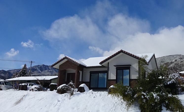今日は大安、青天の下で飯島のつねちゃん家のお引渡しができました。つねちゃから話があったのは去年の今頃(あまりはっきり覚えていなくて済みません)、本当にとんとん拍子に話が進んで昨年完成する予定でした。解体から着工、上棟と予定通りでしたが、それから仕上げなどの打ち合わせで年末に間にあわなくなってしまい申し訳ありませんでした。今日は大原神官さんのお払いの後、お礼にと、大工さん、水道やさんを交えて食事会をしていただきました。みんなに好評なHPの床暖が快適で、窓からの南アルプスの景色はいつまで見ていても見飽きることはなく、「あかさか」さんから出前してもらったこの辺ではちょっと有名というソースエビカツミックス丼は、食べても食べてもなかなか減らないおいしいお昼でした。気持ちもお腹もいっぱいな幸せになりました。ありがとうございました。