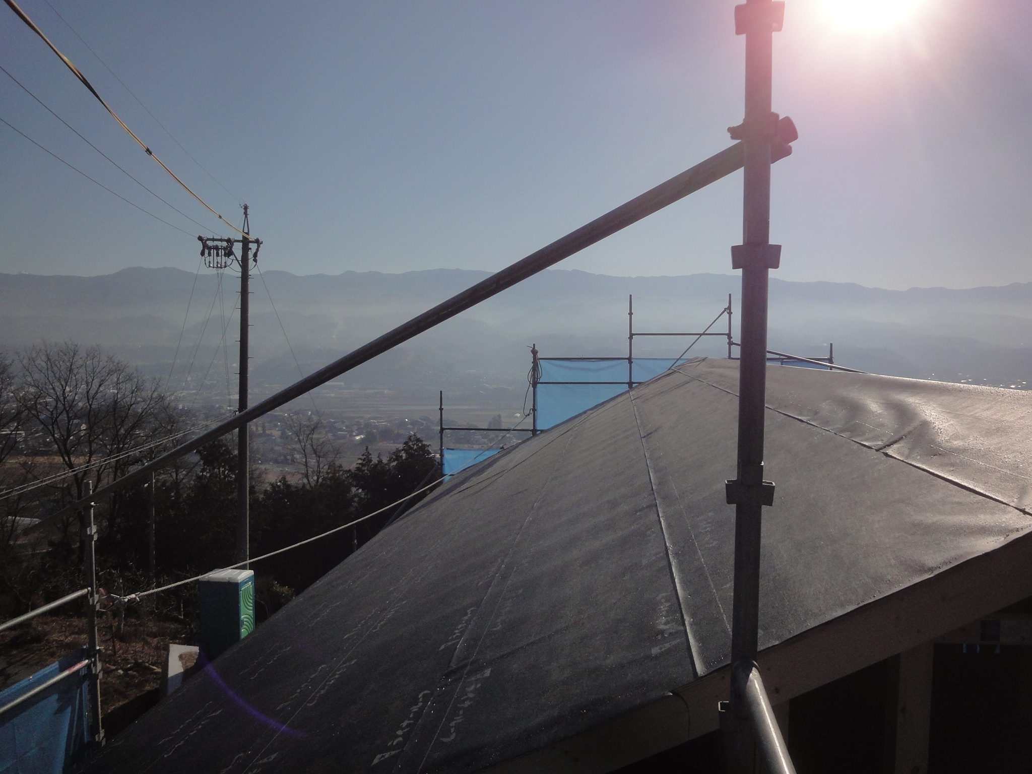 今日が仕事始めのところは多かったと思います。今朝はウチでもほとんど全員が集まり、年始の朝礼を私が当番で行ないました。やはり最初ですから社長が方針を示さなければ行き先が見えませんからね。かと言って、毎日当番が読む今年の目標を解説するくらいで時間は短いものです。それから、それぞれの人に今年の目標を言ってもらいました。その後は雑用をしてから、見放されないように金融機関さんにご挨拶に伺い、防水検査に2軒回りました。そこで早速問題発見!下屋のフェルトの張り方です。情けないことですが、良い方に捉えれば年初から未熟なところを改善できそうです。