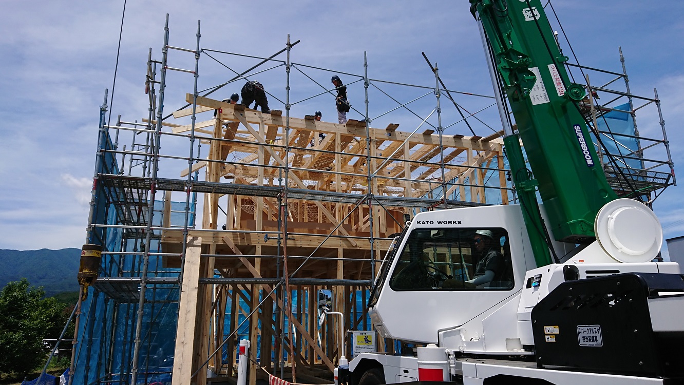 これだけ記録的に暑いと体力を使う建て方作業は大変で熱中症の危険が増します。この頃は若い大工さん達で建ててもらうので少しは安心ですが熱中症には要注意です。家では庭屋さんが剪定をしてくれていますが、この親子の庭屋さんは本当によく動きます。親父さんの年齢を聞くと、なんと85歳!慣れとるからと一日汗びっしょりで働いてくれます。これだけ動ける85歳はそうそういないと思います。気持ちばかりでは続きませんね。