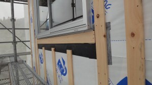 昨日と今日は上殿岡Y邸で見学会をさせていただいていますが、天気が悪いにもかかわらずお越しいただきました皆様本当にありがとうございます。週末、このY邸からほど近くのH邸の防水下地検査をしました。すると、防水自体は問題ないのですが、通気胴縁の隙間が狭いところがありました。狭くなるのは窓周りで、少なくても胴縁の厚み分は空いていないと通気が滞ってしまいます。特に窓周りは結露しやすいので通気ができないと良い結果になりません。