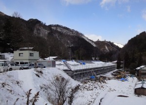 和合複合施設の現場に行ってきました。先日降った雪の多さと進行状況の確認などのためですが、現場はほとんど日陰なので、今日の午前10時でも-1.5℃という温度で、雪は屋根も周りも解けていませんでした。現場は職人さんの車がいっぱいで駐車するにも苦労するほどで、屋根、外壁、防水など外部の仕事ばかりでなく、内部では内装の作業が盛期で、大勢の職人さんが働いてくれていました。昔は大きな現場では内部でもシートを敷いただけで土足で作業をしていたこともありましたが、今はみんな上履きなのできれいな作業場になっています。もちろん現場内では禁煙なので空気もきれいです。条件の悪い中で工期も迫ってきましたが、現場の人たちの頑張りのおかげでここまできているので見通しは明るくなってきました。今夜は雪の予報が出たので道中は気をつけてくださいね。