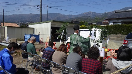 遅咲き 松川町上片桐でT邸の地鎮祭が行われました。T様ご夫妻と2人のお子さん、ご両親や親族様が参加されて賑やかなお祭りができました。ここの敷地周辺に幾分傾斜があるので地盤改良になってしまいましたが、フルーツラインが近くて住みやすそうなところです。よいお天気でしたが標高が高くて、下の方では桜などや花桃も満開なのですが、花桃は開き始めたところでした。家とは3℃くらい違いそうです。よろしくお願いします。