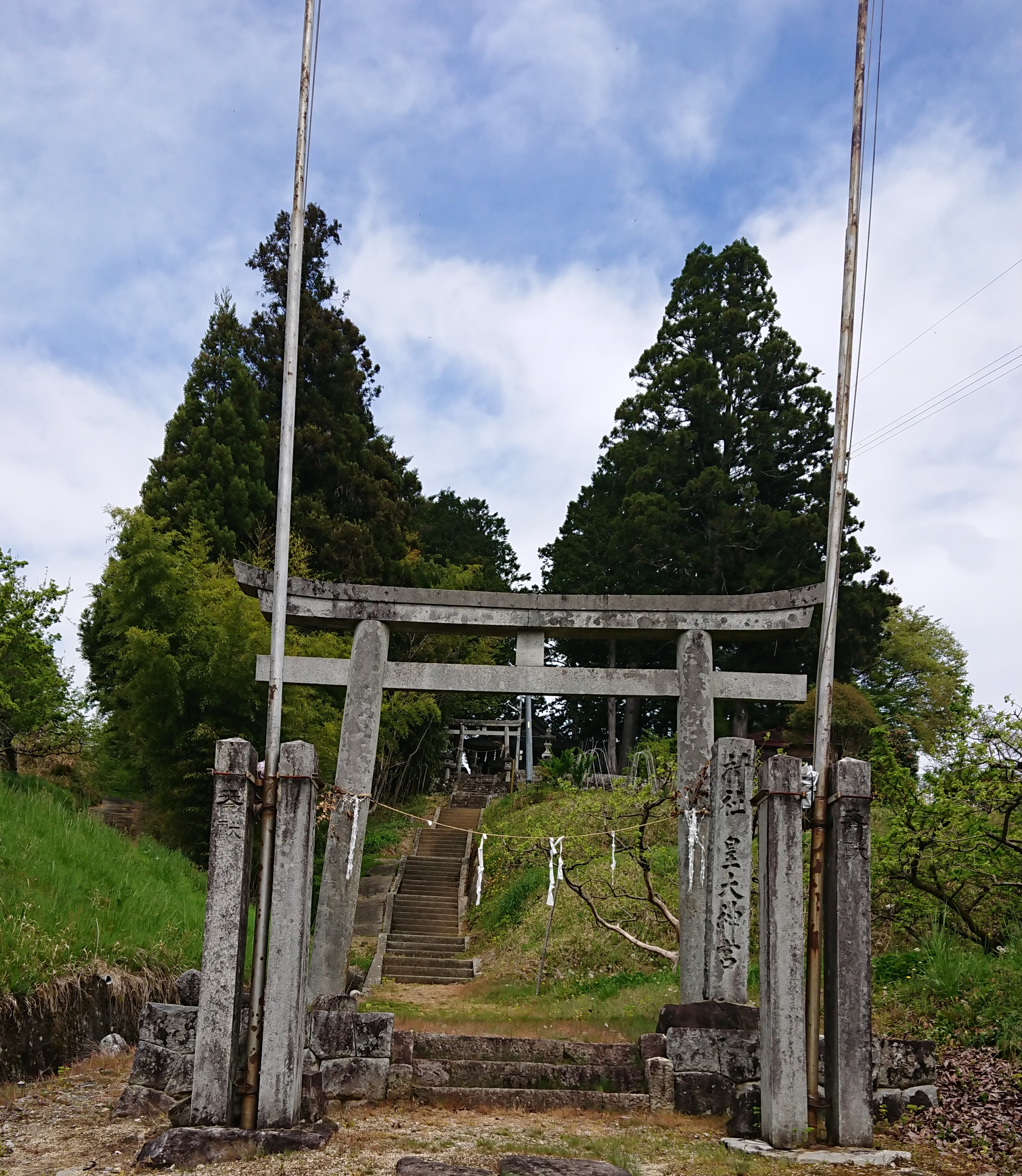 虎岩 下久堅虎岩でS邸の地鎮祭が行われました。朝から雨が降っていて午後からは大きな傘マークの予報で、現地に着くまではワイパーを回して行きました。現地の少し下に車を停め、傘を持ち長靴を履いて道を上ると明るくなってきました。ご当地の平澤宮司さんが式の説明をしながら進めてくれ、この場所は虎岩の中心地で良い場所だとの付け加えもされました。晴れ間が覗くような良い天気になり片付けも楽にできました。おめでとうございました。よろしくお願いします。