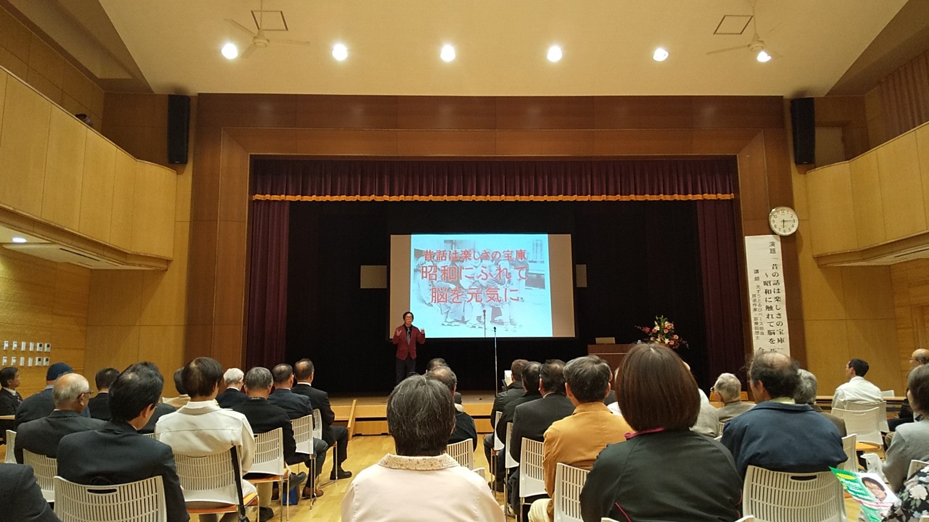 とよおかまつり協賛講演会は、以外にも認知症の話でした。以外にもとは、講師が元ずーとるびの今村良樹さんでしたので、芸能関係とかお笑いかなとも思ったからです。彼は今、心療回想士と言う資格で仕事もしている同年代の気さくな方でした。話を要約すると、どうも我々くらいからの年代の人には昔の楽しかったころの話を思い出してワイワイ言うと、他の色々なことも思い出されて認知症の予防になるんだそうです。昔の歌を歌うのもいいそうです。後の懇親会で、近所に住む同年が認知症で免許を返納したと聞きました。昔ばなしも歌も好きでない私・・・。